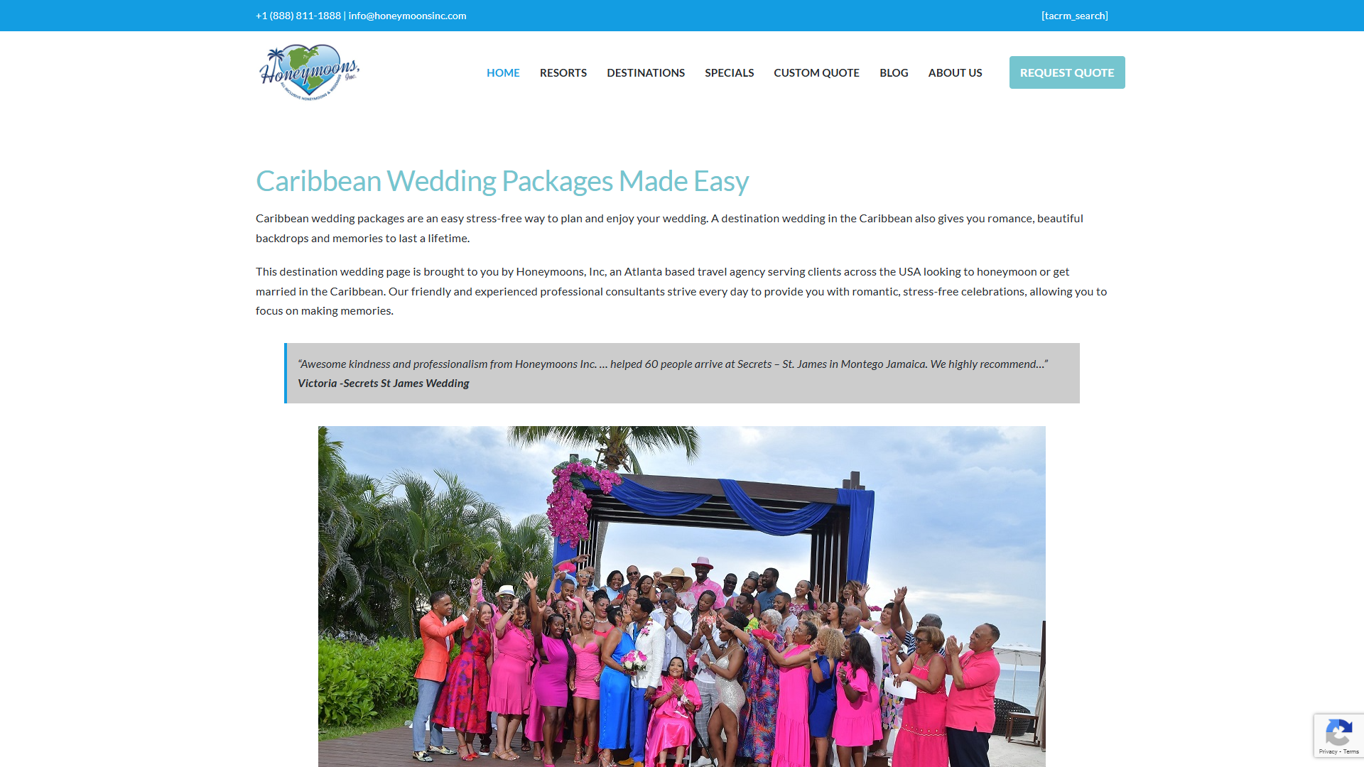 A comprehensive digital solution for Caribbean-Wedding.com that revolutionizes how they serve their travel & events clients. Destination wedding planning service for Caribbean weddings, operated by Honeymoons Inc.