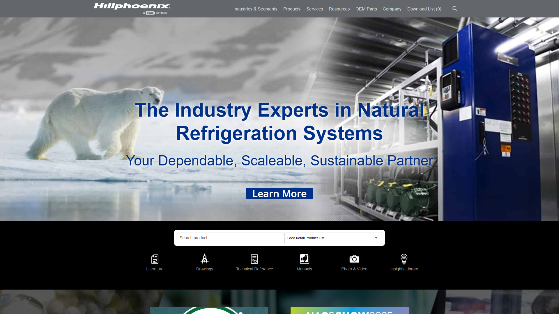 Enterprise web application for commercial refrigeration systems, enabling technicians, engineers, and customers to search and access comprehensive product information, technical specifications, installation guides, and 3D visualizations.