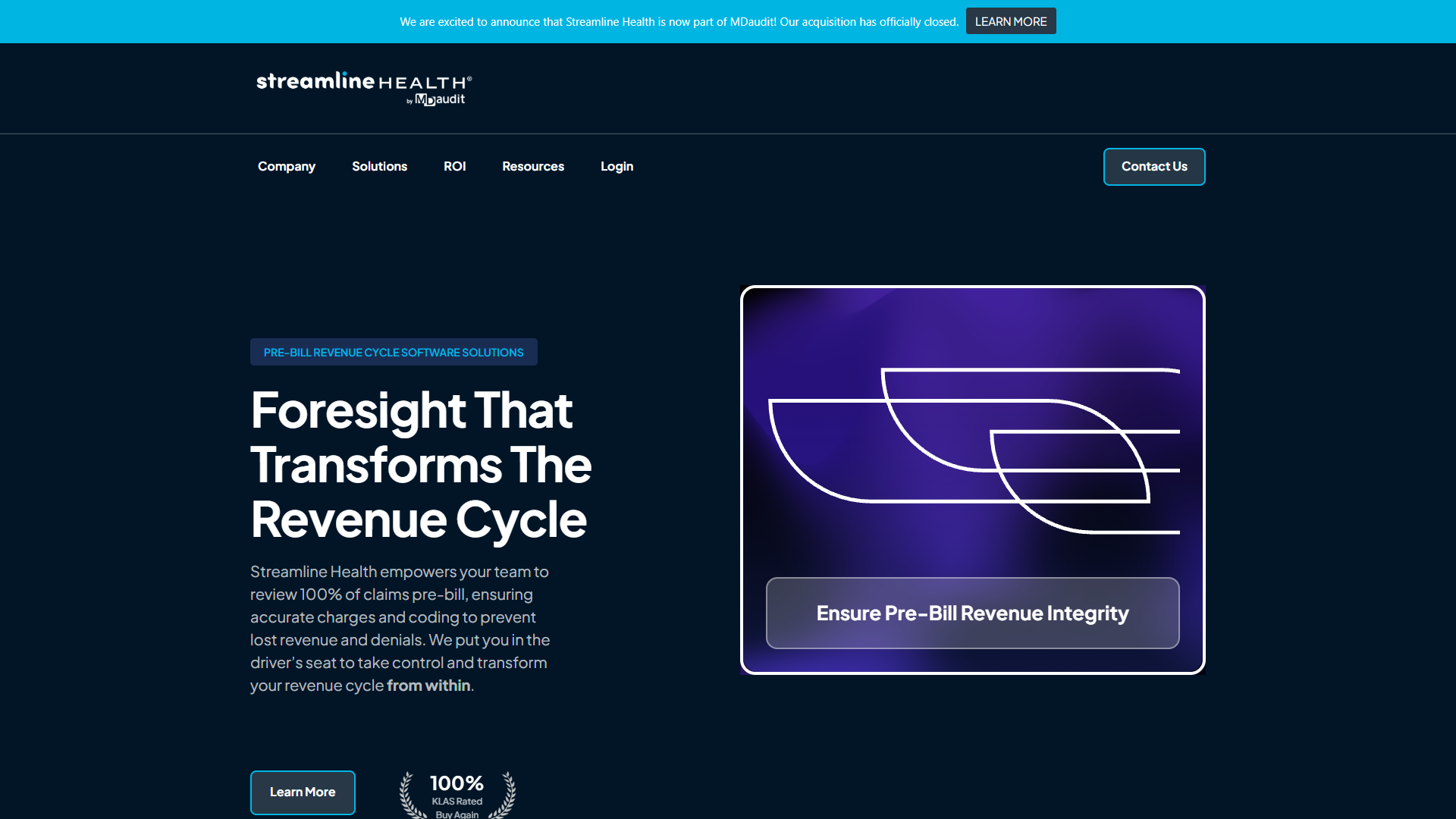 A comprehensive digital solution for Streamline Health Solutions that revolutionizes how they serve their healthcare technology clients. Website for provider of pre-bill revenue cycle management software solutions. Empowers healthcare teams to review 100% of claims pre-bill, ensuring accurate charges and coding to prevent lost revenue and denials. Helps healthcare providers optimize revenue integrity and financial performance.