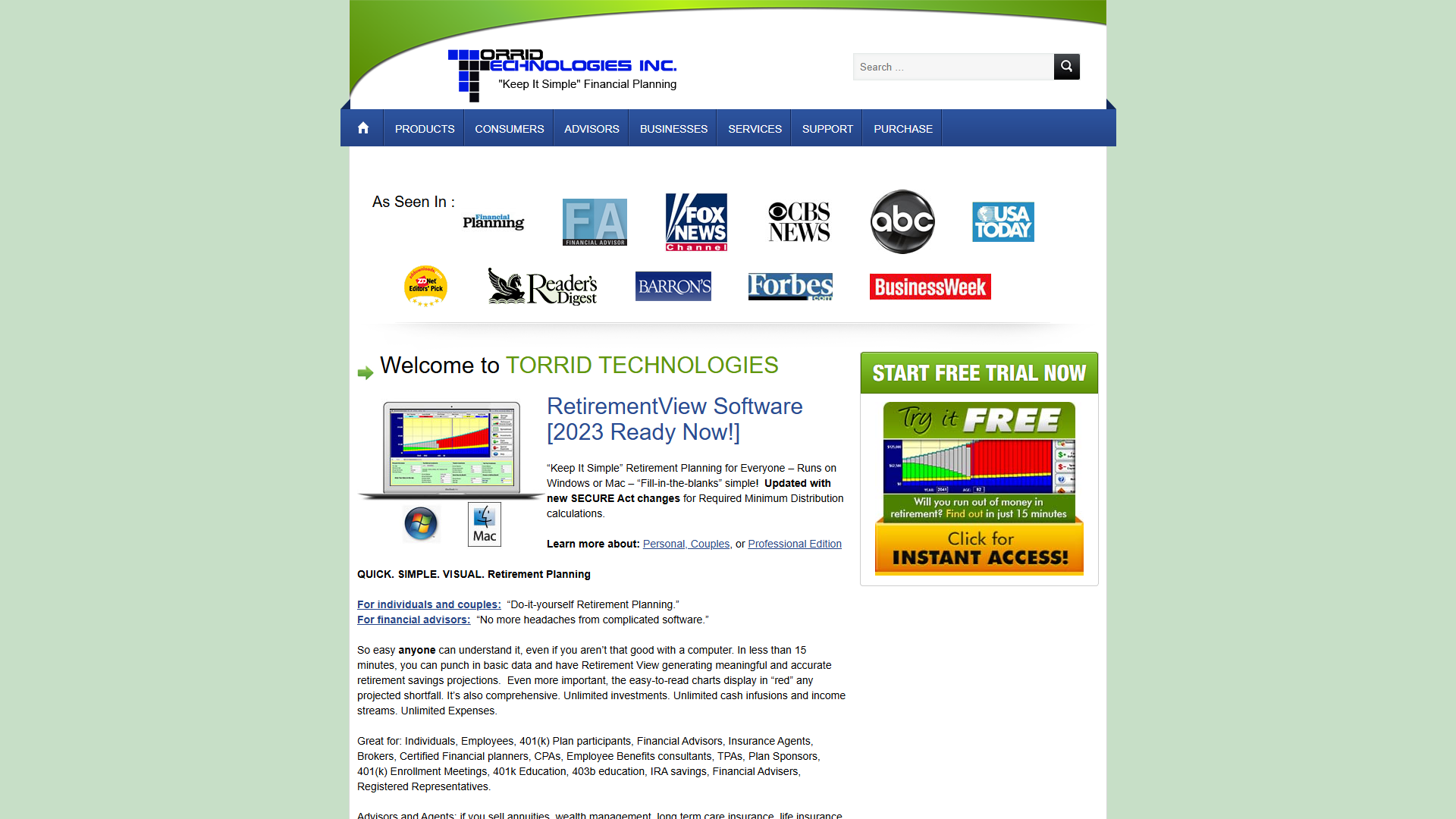 A comprehensive digital solution for Torrid Technologies that revolutionizes how they serve their financial technology clients. Retirement planning software (RetirementView).